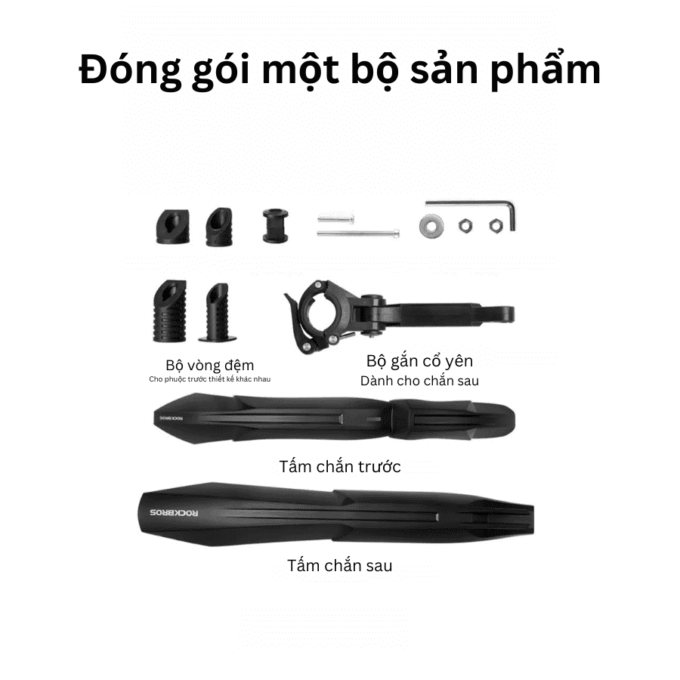 Bộ chắn bùn xe đạp Rockbros 28210003001. Một bộ sản phẩm có tính thích nghi cao, phù hợp với nhiều mẫu xe khác nhau, cấu trúc. Thông qua bộ phụ kiện đệm, Pad gắn mở rộng có đi kèm theo trong trọn bộ sản phẩm.