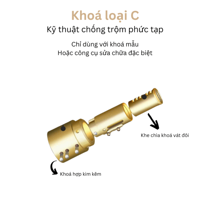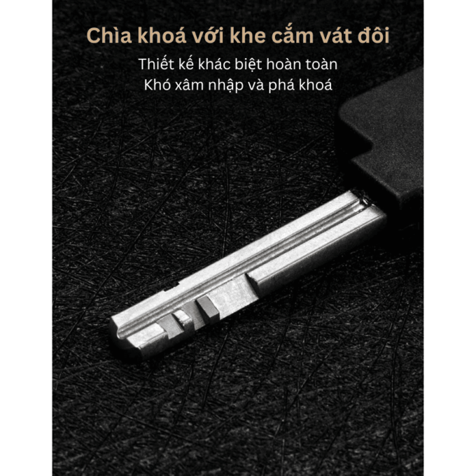 • Khóa với khe cắm vát đôi khác biệt. Khó xâm nhập với mọi công cụ phá, hay sửa chữa ổ khóa hiện nay.