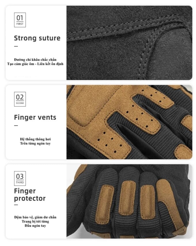 • Thiết kế Full ngón, bảo vệ tốt nhất cho người chạy xe