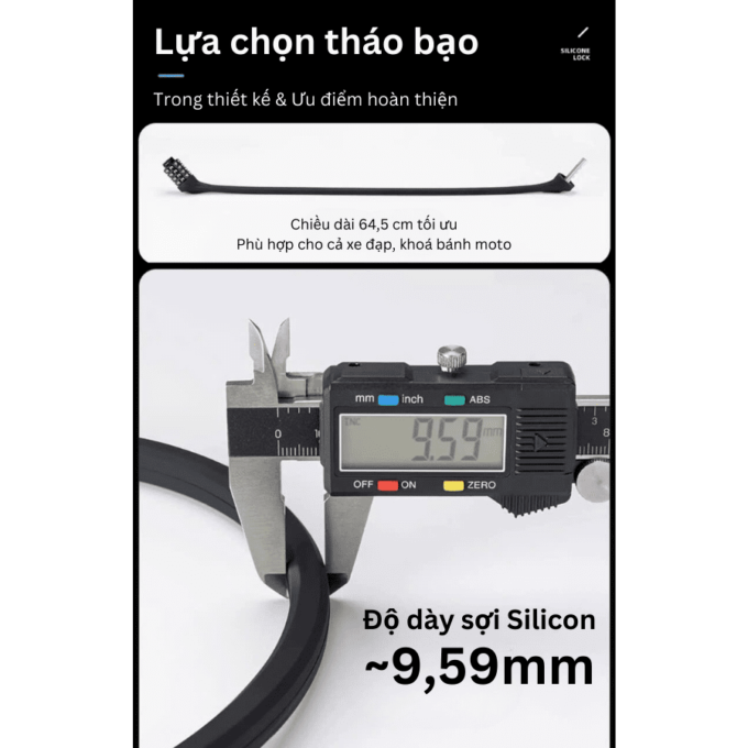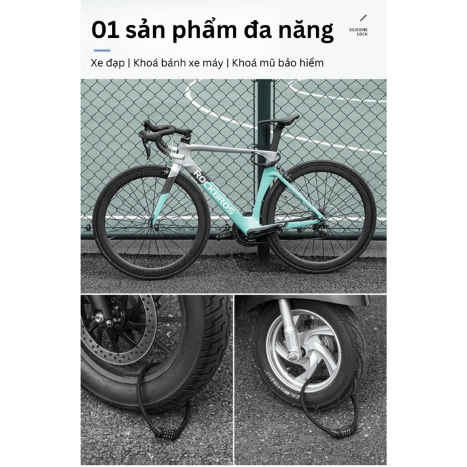 Silicon giúp sản phẩm khóa dây xe đạp siêu nhẹ Rockbros 3220003 có được sự bền chắc, dai giẳng. Chịu lực kéo cao, hay dễ dàng cuộn lại thành 2 vòng, để cố định – khóa xe đạp ở đường kính dây khóa nhỏ hơn. Với đường kính lớn và dày cho khả năng chống cắt, với bộ mã 04 số. Và 10.000 khả năng dò tìm bộ mã số cá nhân đã được lựa chọn.