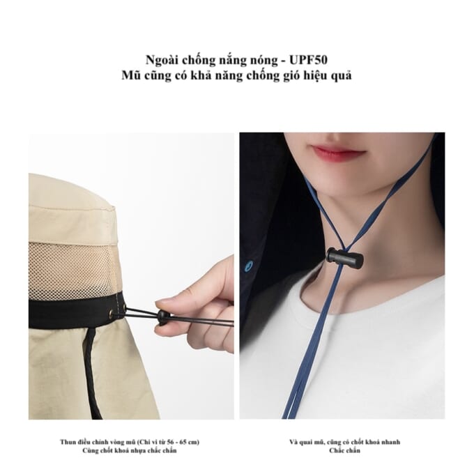 • Vạt che nắng cổ định – dài. Che kín 100% vùng vai – gáy phía sau