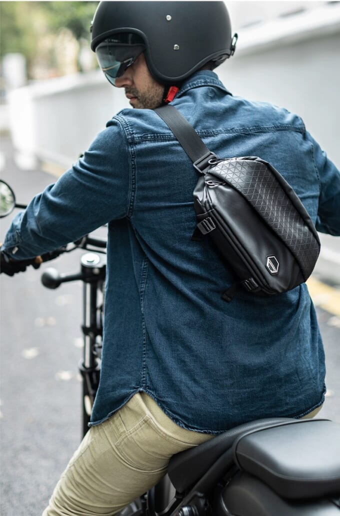 Khi là một món phụ kiện di chuyển đường dài với Moto hay xe đạp. Túi da đeo chéo nam nữ Rockbros H23: