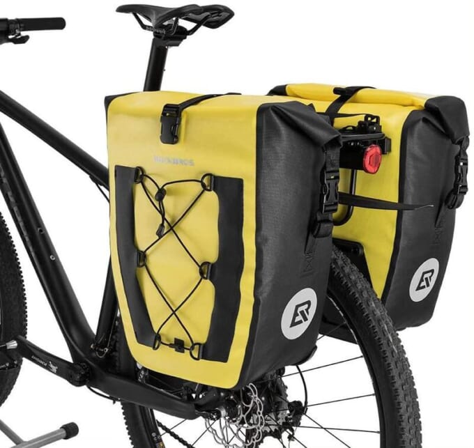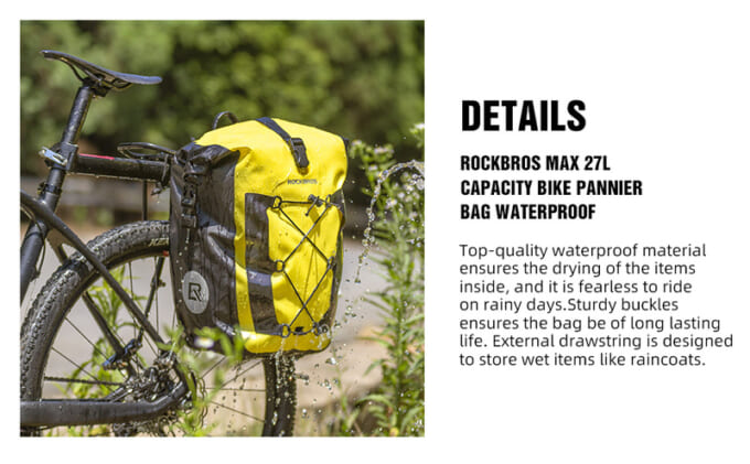 Túi treo Baga xe đạp Rockbros AS-002. Có ở đây là một chất liệu chống nước hoàn toàn, sợi 840D Nylon cùng lớp phủ PU. Bảo vệ an toàn, chống mọi tác nhân gây ẩm – thấm qua bề mặt vải túi.